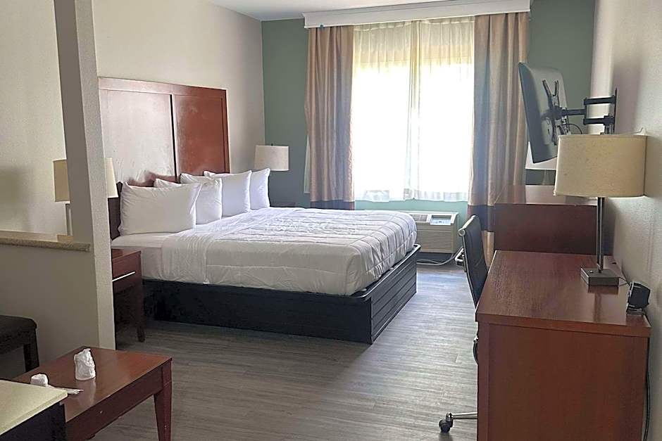 The suite provides a tea and coffee maker, a safe deposit box, heating and a TV with cable channels.